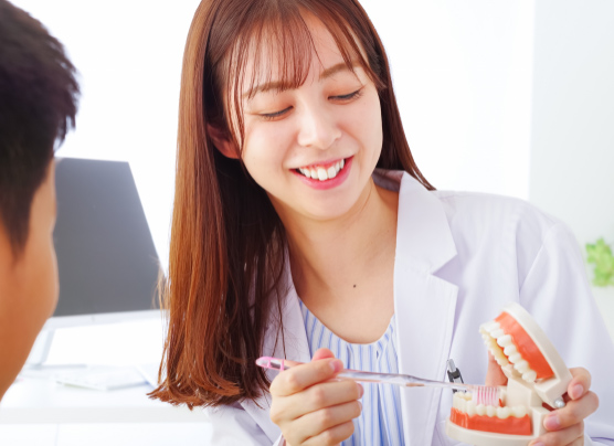 現在の歯やお口の状態について丁寧にご説明し、その上で治療内容をお伝えして、しっかりご理解いただいた上で進めています。治療をただ受けて帰るのではなく、「どのような状態でどのような治療が必要だったのか」を理解していただくことが、健康な口腔環境を維持するために重要だと考えています。