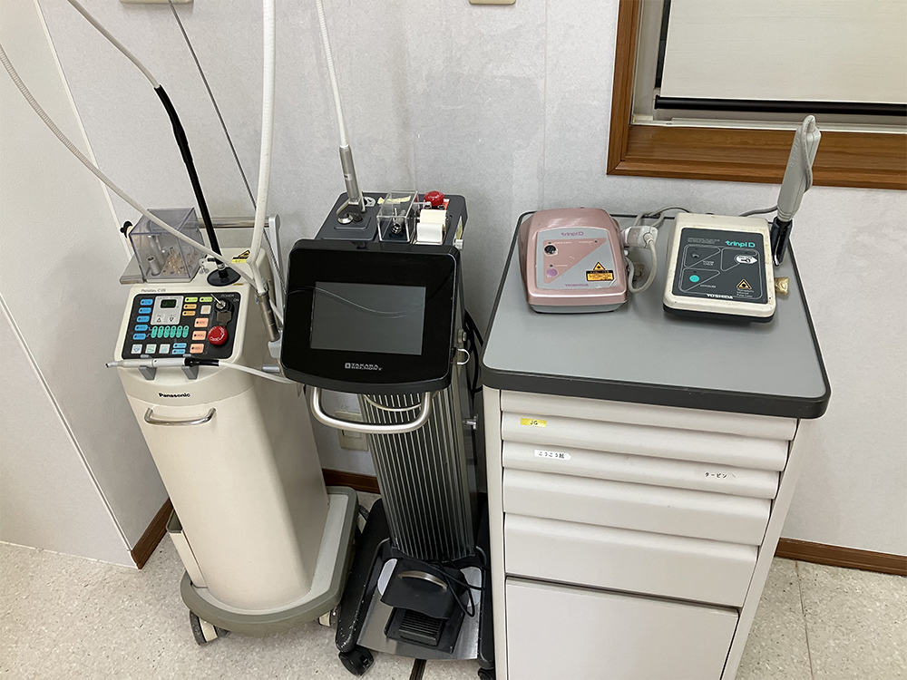 口腔内の軟組織に対する切開、止血、凝固などが可能な保険適用のレーザー機器を導入しており、再発性アフタ性口内炎に対するレーザー治療も行っています。治癒をサポートし、患者様の負担を軽減する治療に努めております。
